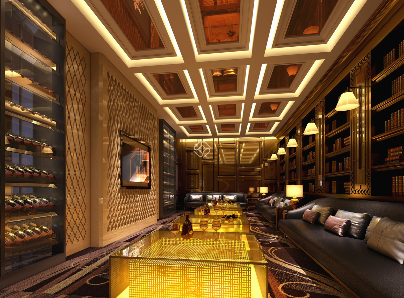 ,創(chuàng)造出具有層次感的空間。結(jié)構(gòu)設(shè)計(jì):運(yùn)用石材、浮雕和拼花等裝飾元素,巧妙地打造出立體感強(qiáng)烈的墻面和天花板結(jié)構(gòu),增加了空間的層次感。燈光
