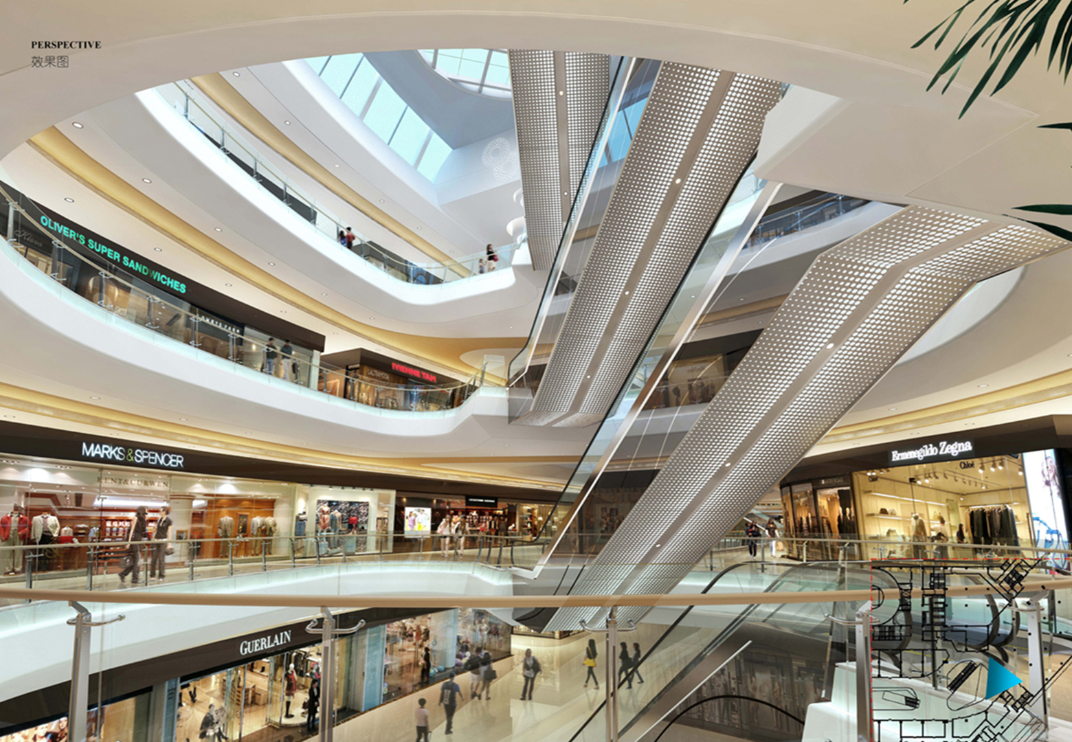 ,提升商場的整體品質(zhì)和形象??傊覂?nèi)商場設計弧形線條感可以給人一種流暢、柔和、優(yōu)雅的感覺,營造出舒適、溫馨的室內(nèi)環(huán)境,提升商場的
